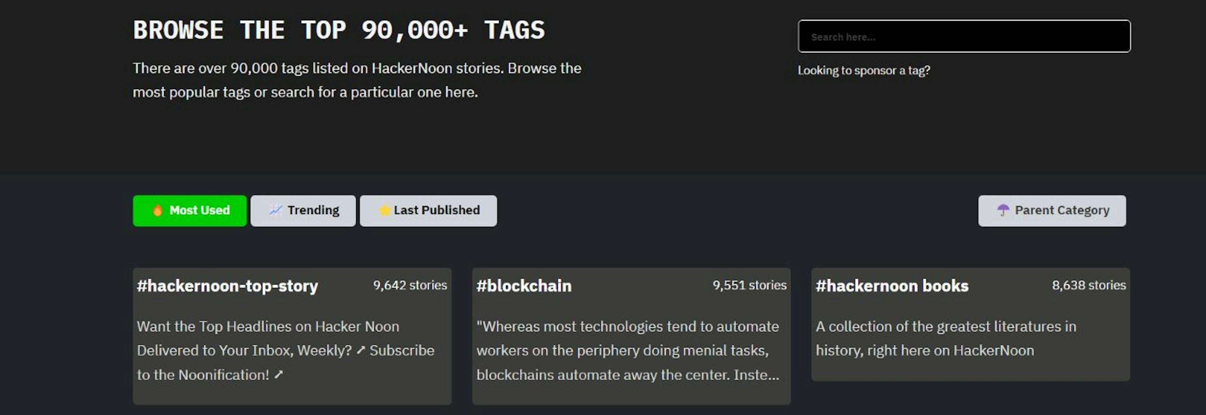 Introducing our new, sleek, and improved tags page. Browsing articles on HackerNoon has never been easier. All of our tags are in one place in a convenient manner. You can sort the tags by most used, trending, or even last published.
